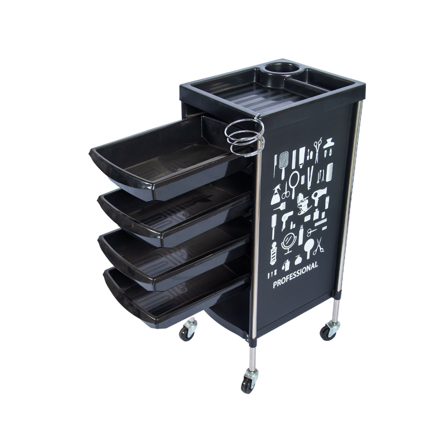 Carro Ayudante de Peluquería Negro 4 Bandejas