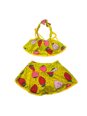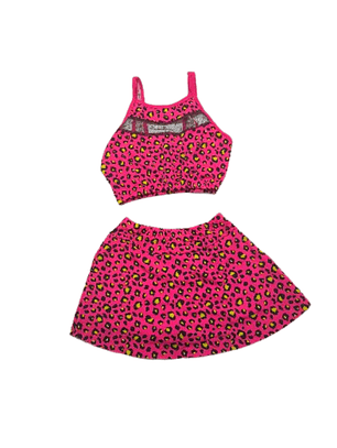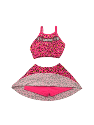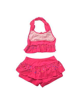 Traje de Baño para Niñas de 2 Piezas Fucsia con Tul y detalles plateado