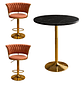 Pack Mesa de Bar Negra en MDF EFECTO MÁRMOL + 2 Taburetes Beige